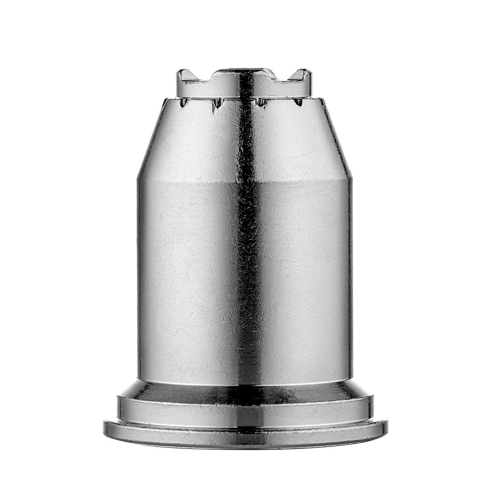 Насадка для плазменных резаков CP 101/141/151. Используется при установке удлиненного катода и сопла. Насадка устанавливается на защитную насадку и фиксируется специальным кольцом. Насадка совместима только при использовании удлиненных сопел и катодов.