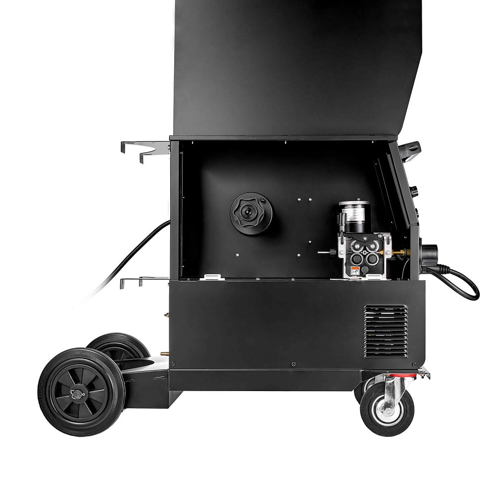 - Металлический механизм подачи проволоки. Можно установить катушку с проволокой весом до 18 кг (D300).