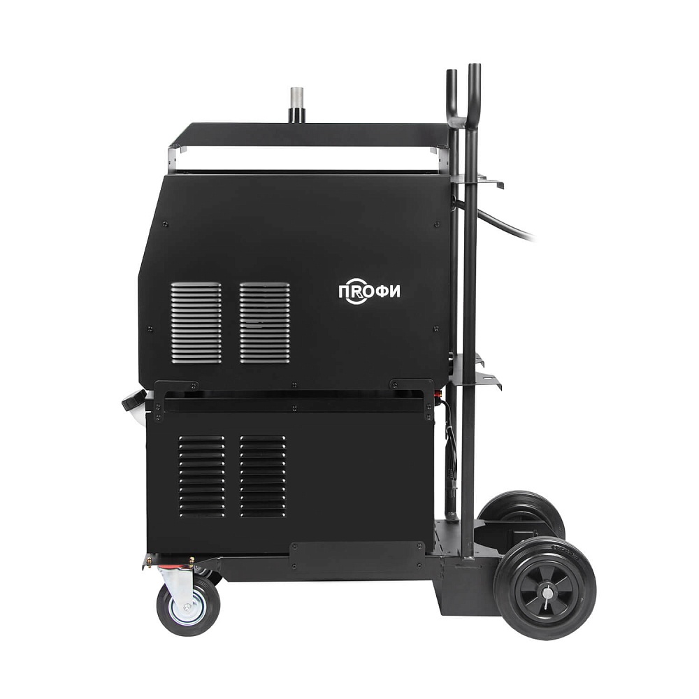 Аппарат ПРОФИ MIG 500 FW поставляется в сборе блоком водяного охлаждения объемом до 10 литров и с тележкой-платформой, которая обеспечивает более легкую и комфортную эксплуатацию оборудования. Тележка обладает надежной усиленной конструкцией. На нее можно установить сварочный источник, выносной подающий механизм, блок жидкостного охлаждения и газовый баллон объемом 40 литров.