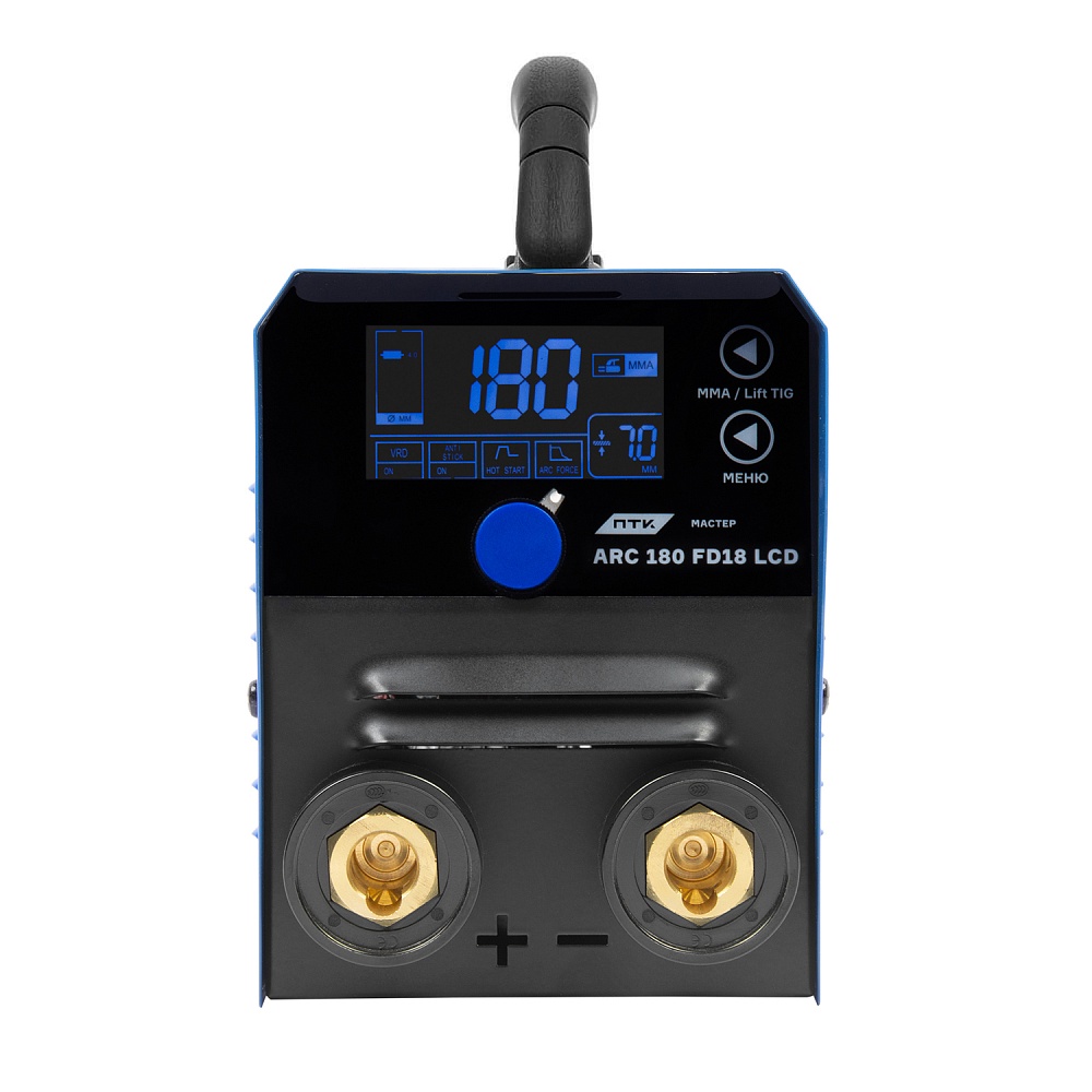 Особенности аппарата ручной дуговой сварки ПТК МАСТЕР ARC 180 FD18 LCD:- Наличие LCD панели с удобными настройками сварочных параметров для более быстрой и точной подготовки аппарата к работе. Во время работы на дисплее отображаются все параметры регулировки и индикаторы.