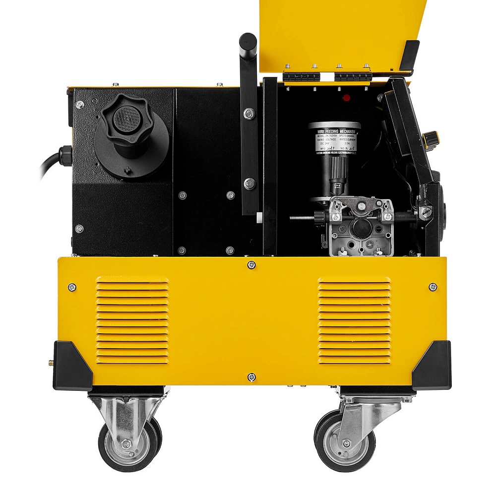 • Металлический механизм подачи проволоки. Используется сварочная проволока диаметром от 0,8 до 1,2 мм. Можно установить катушку с проволокой весом до 18 кг (D300) и регулировать скорость подачи проволоки от 3 до 16 м/мин.