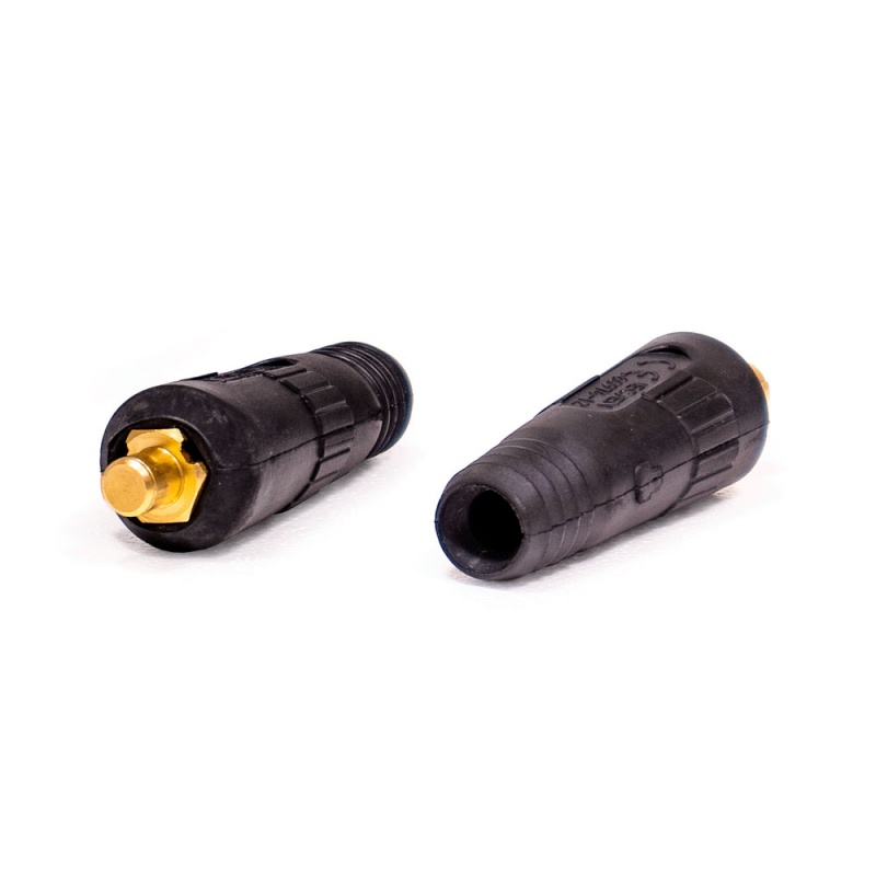 Кабельная вилка 10-25 предназначена для установки на сварочные кабели сечением до 25мм2. Вилка выполняет функцию быстроразъёмного соединения и позволяет подключать сварочные кабели к источнику тока за считанные секунды.