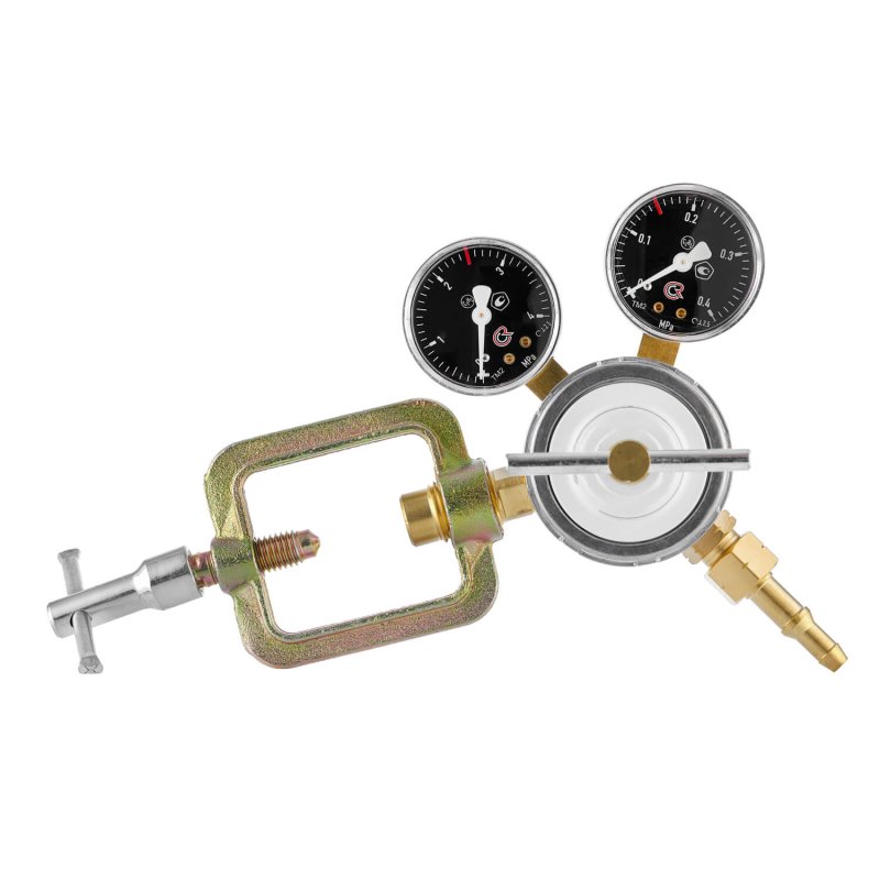 Ацетиленовый редуктор в латунном корпусе. Применяется при интенсивной эксплуатации и на открытом воздухе. Поставляется в комплекте с универсальным ниппелем для рукавов диаметром 6 и 9 мм.