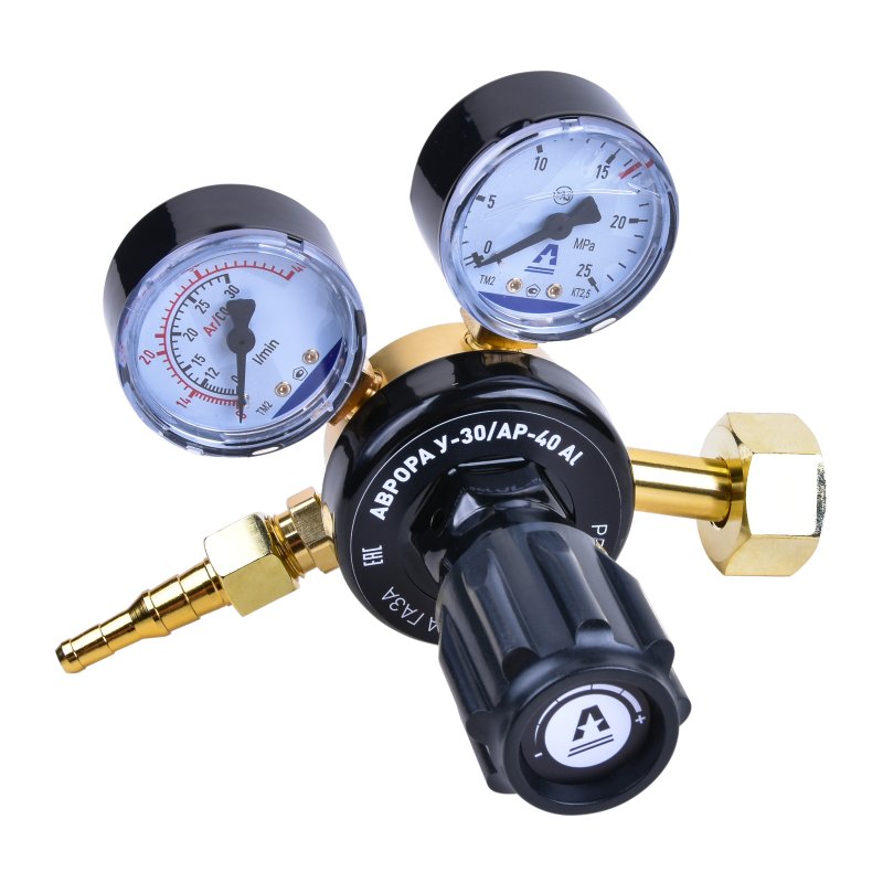 Регулятор расхода газа АВРОРА У-30/АР-40 Al предназначен для понижения и точного регулирования давления газа, поступающего из баллона, с автоматическим поддержанием заданного рабочего давления. Обеспечивает стабильную работу сварочных постов полуавтоматической и аргонодуговой сварки.