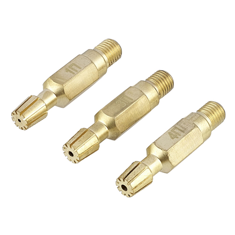 Резак поставляется в сборе с внутренними латунными мундштуками №1П, 2П, 3П и 4П с шлицевыми пазами для выхода подогревающего пламени. Давление газа на входе и расход зависит от установленного внутреннего мундштука. В руководстве по эксплуатации указаны ориентировочные данные.