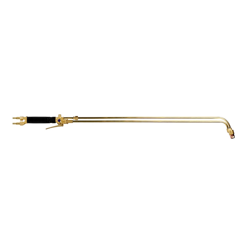 Инжекторный пропановый газокислородный резак для ручной разделительной резки металла из низкоуглеродистых сталей толщиной до 300 мм. Длина резака 1000 мм. Угол наклона головки резака 135°. Укомплектован наружным и внутренними мундштуками.