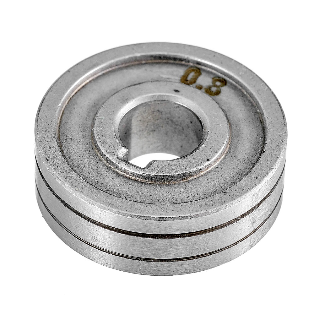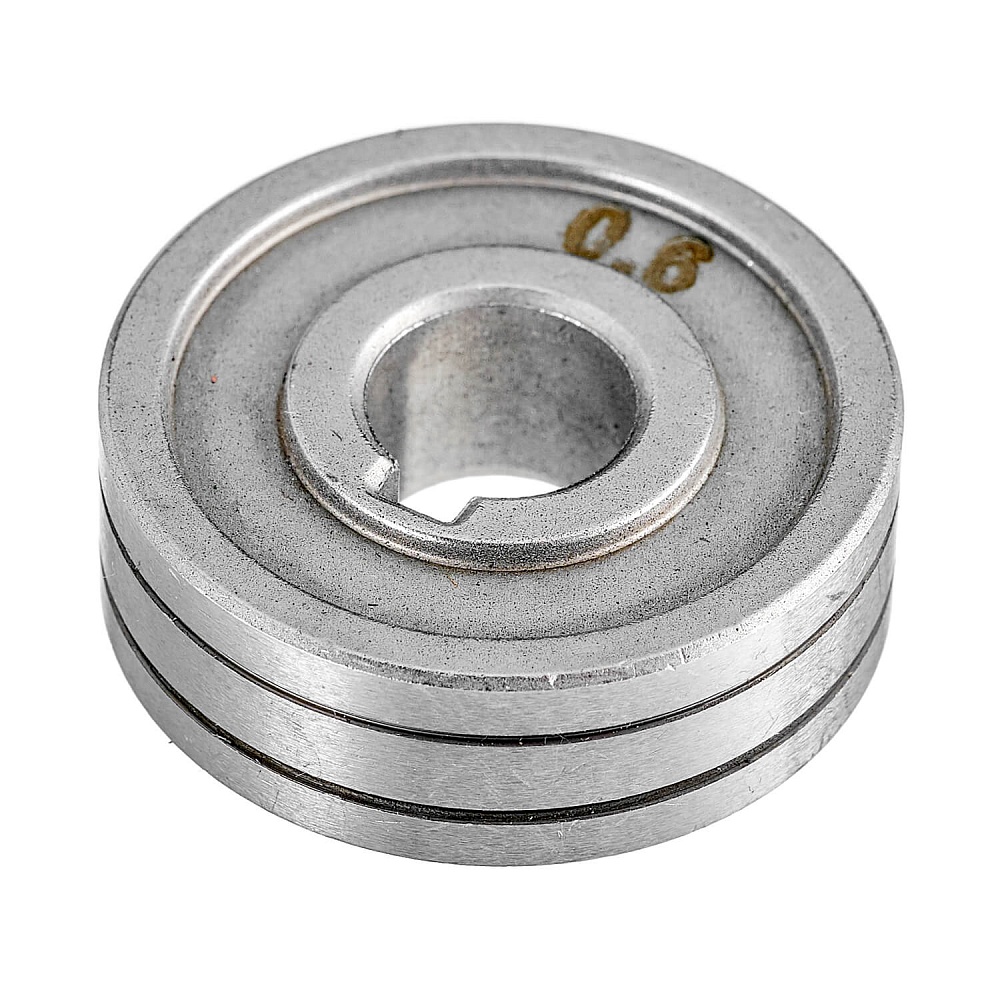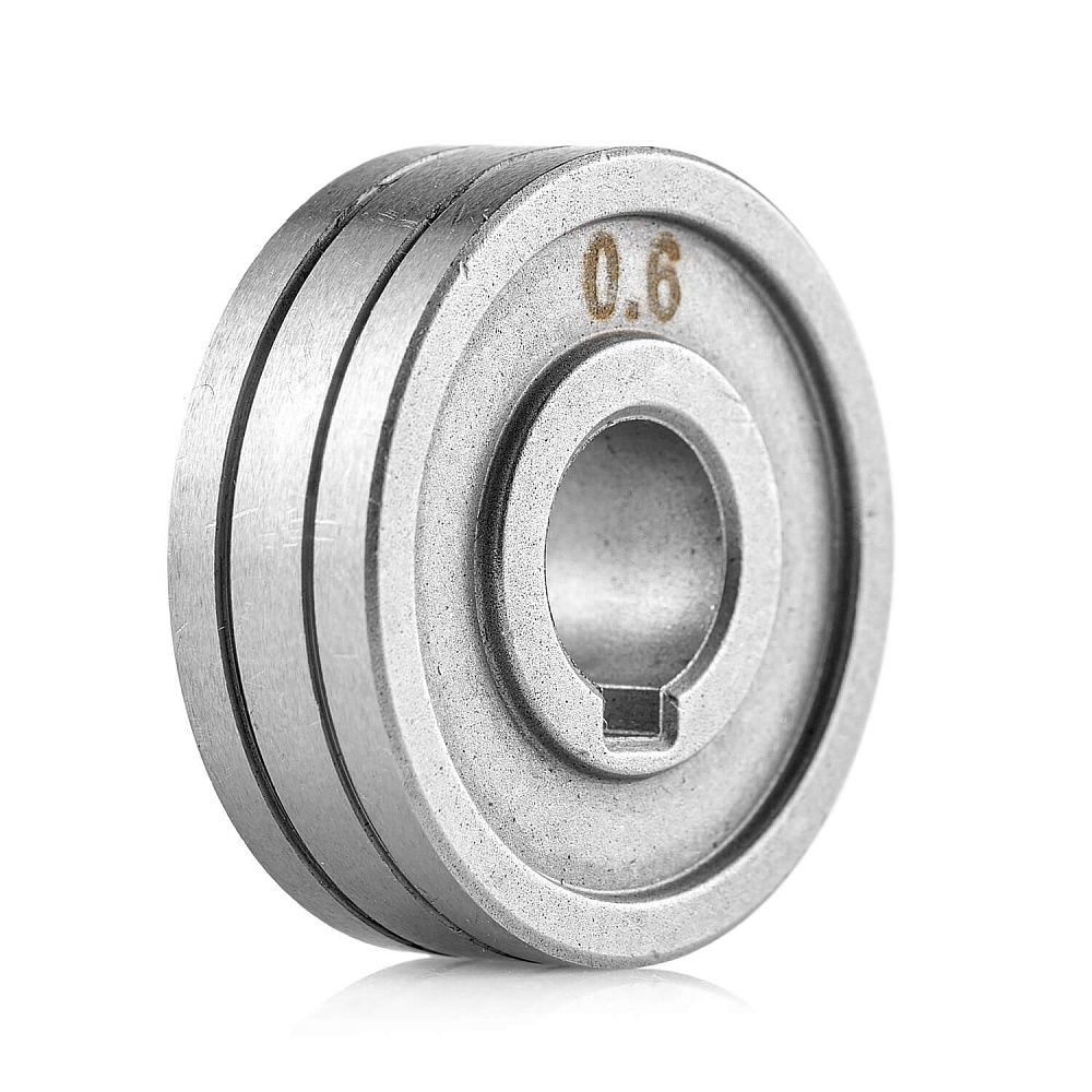 Это сменный элемент подающего механизма, который подбирается в соответствии с видом сварочной проволоки и ее диаметром. Данные ролики предназначены для работы со стальной проволокой диаметром 0,6–0,8 мм. Размер роликов 30х10х10 мм. Подающие ролики имеют две направляющие канавки  V-образной формы. При изменении сечения проволоки необходимо перевернуть ролик нужной стороной и использовать его далее.