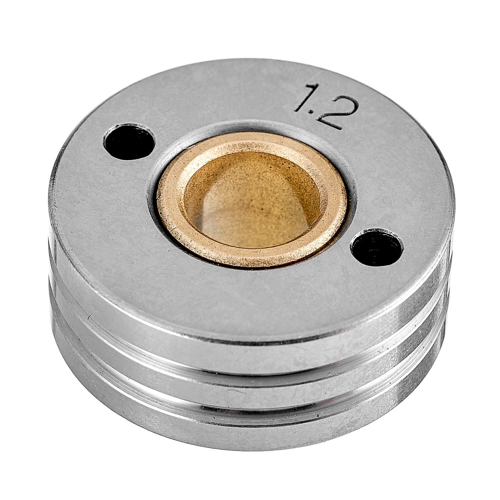 Ролик подающего механизма для сварочных полуавтоматов – это сменный элемент подающего механизма, который подбирается в соответствии с видом сварочной проволоки и ее диаметром. Используется для работы со стальной проволокой диаметром 1,2–1,6 мм. Размер роликов 30х10х12 мм. Подающие ролики имеют две направляющие канавки V-образной формы. При изменении сечения проволоки необходимо перевернуть ролик нужной стороной и использовать его далее.