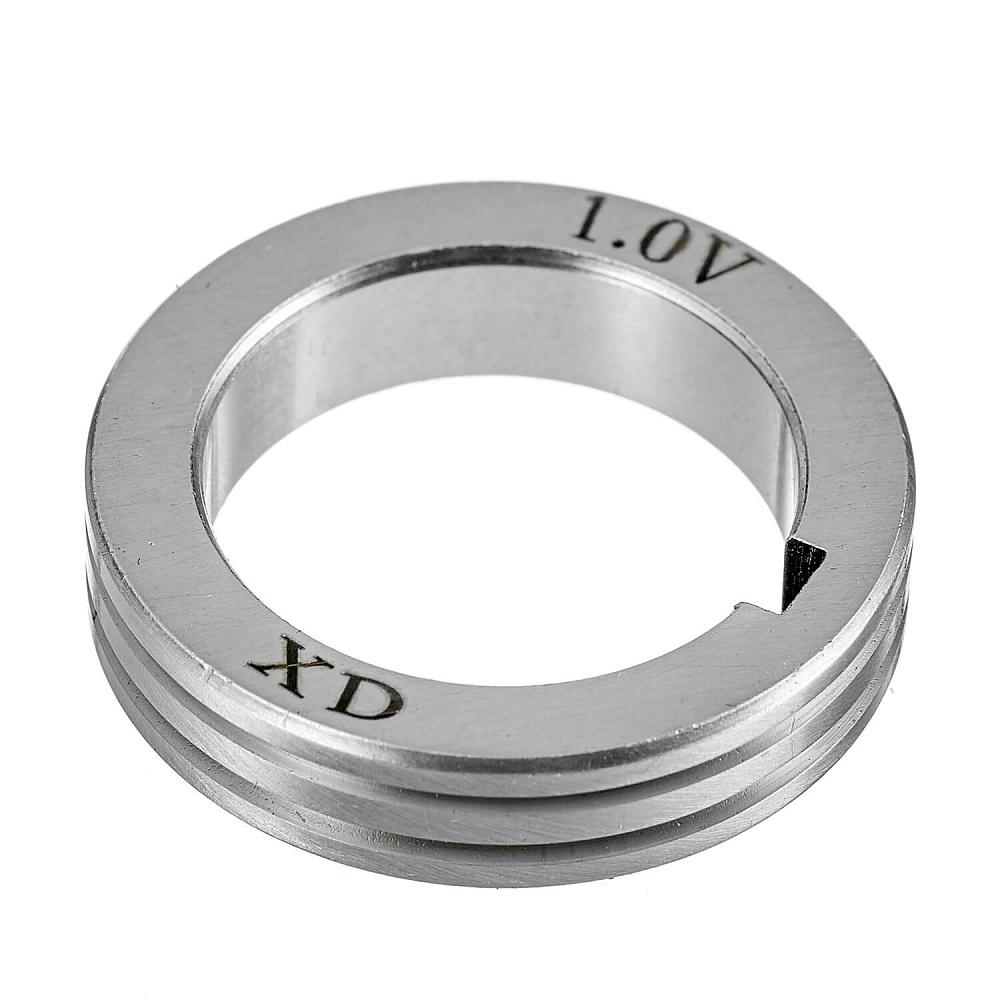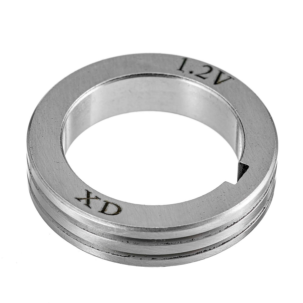 Это сменный элемент подающего механизма, который подбирается в соответствии с видом сварочной проволоки и ее диаметром. Данные ролики предназначены для работы со стальной проволокой диаметром 1,0–1,2 мм. Размер роликов 35х25х8 мм. Подающие ролики имеют две направляющие канавки  V-образной формы. При изменении сечения проволоки необходимо перевернуть ролик нужной стороной и использовать его далее.