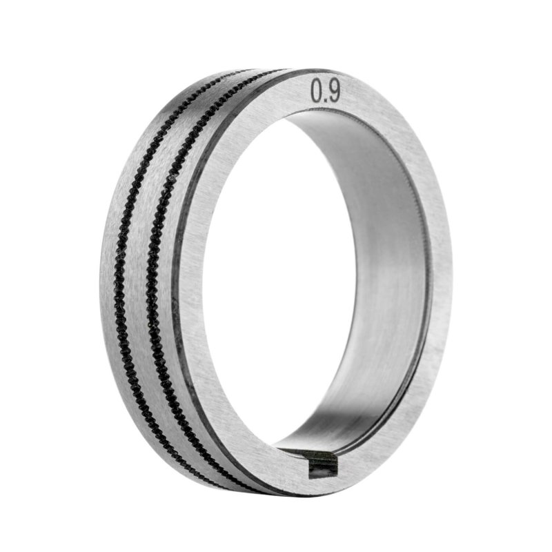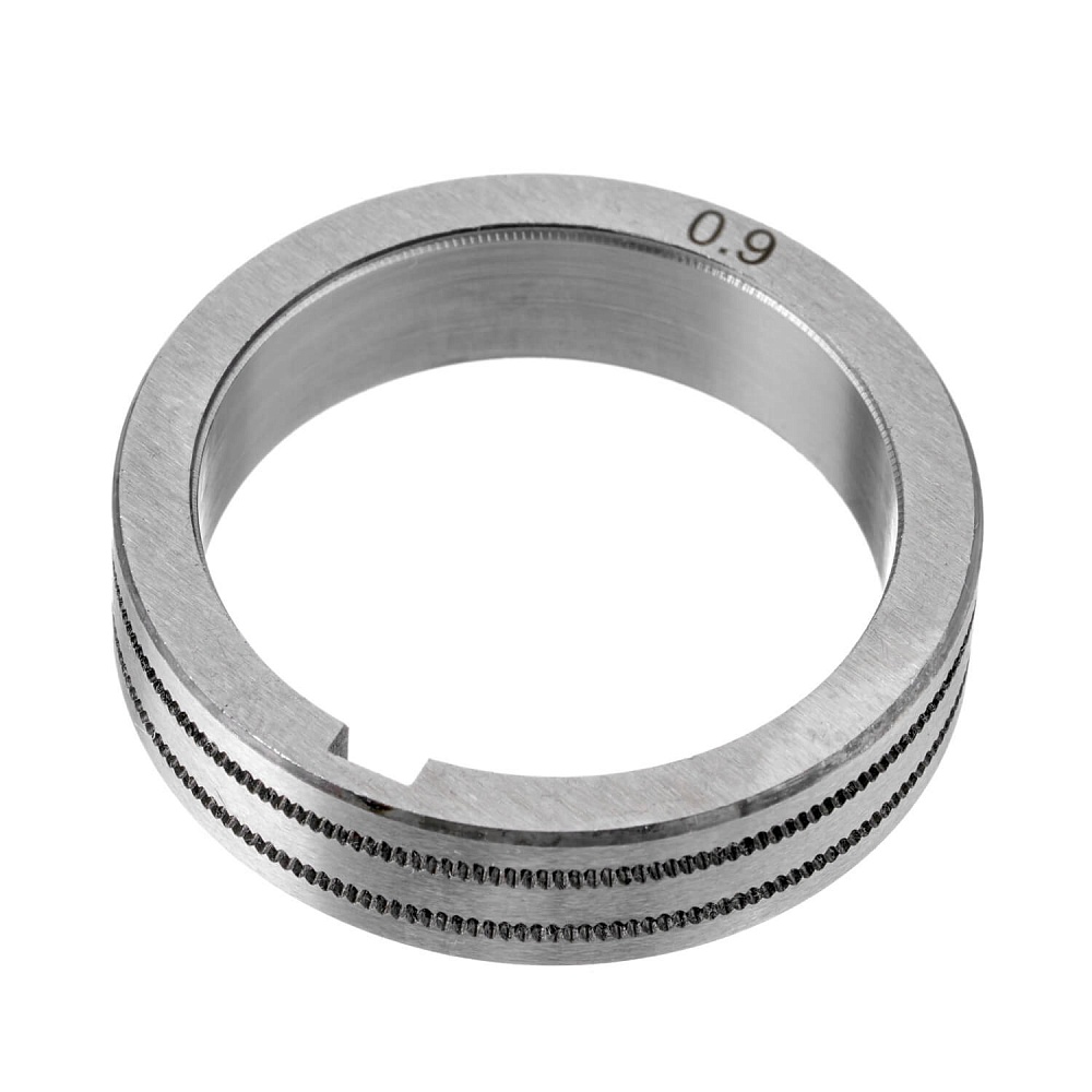 Ролик подающего механизма для сварочных полуавтоматов ПТК RILON MIG 350 GF, MIG 500 GF, MIG 500 I, MIG 500 F, MIG 500 FW. Это сменный элемент подающего механизма, который подбирается в соответствии с видом сварочной проволоки и ее диаметром. Данные ролики предназначены для работы с порошковой проволокой диаметром 0,8–0,9 мм. Размер роликов 40х32х10 мм. Подающие ролики имеют канавки K-образной формы. При изменении сечения проволоки необходимо перевернуть ролик нужной стороной и использовать его далее.