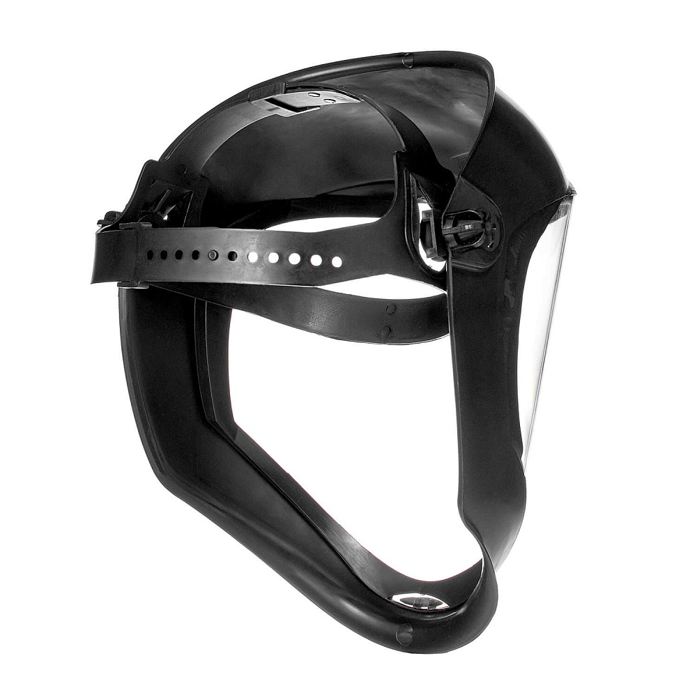Щиток оснащен наголовным креплением с возможностью регулировки размера и обеспечивает удобную фиксацию на голове, для проведения длительных сварочных работ. Имеет скошенную у основания форму для увеличения эргономики изделия, исключает неудобства при повороте и наклоне головы.