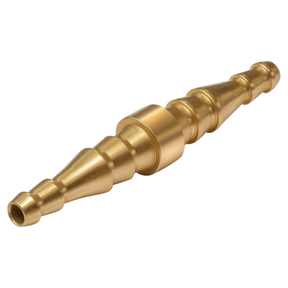 Универсальный неразъемный соединитель предназначен для соединения газосварочных рукавов с внутренним диаметром 6 и 9 мм между собой.
