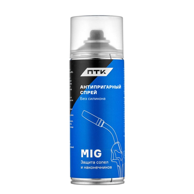 Антипригарный защитный спрей ПТК для обработки деталей сварочной горелки MIG от налипания расплавленных брызг металла. Объем баллона 520 мл.