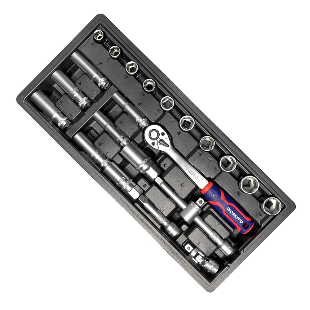 Ложемент с головками и принадлежностями 3/8" (23 предмета) WP209040