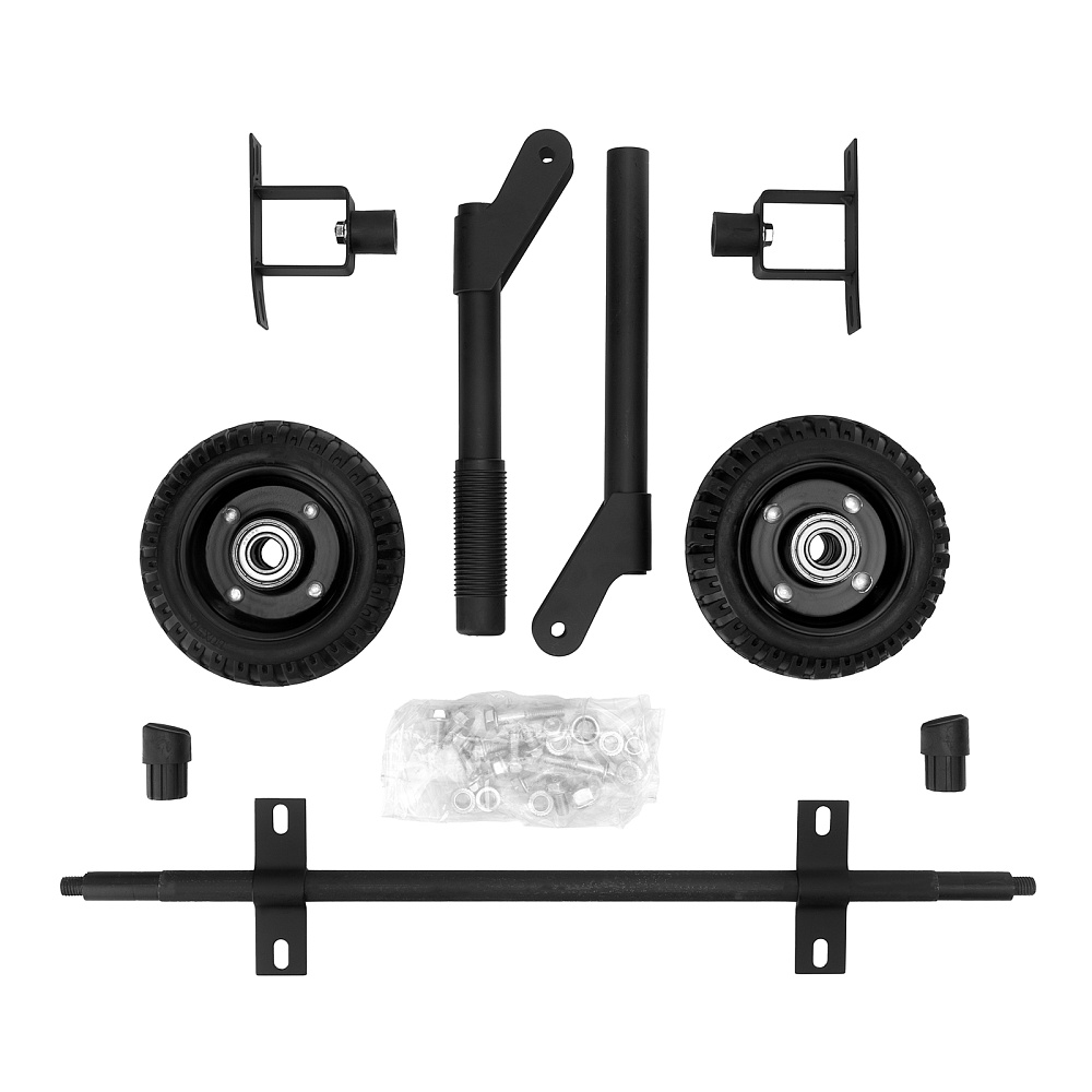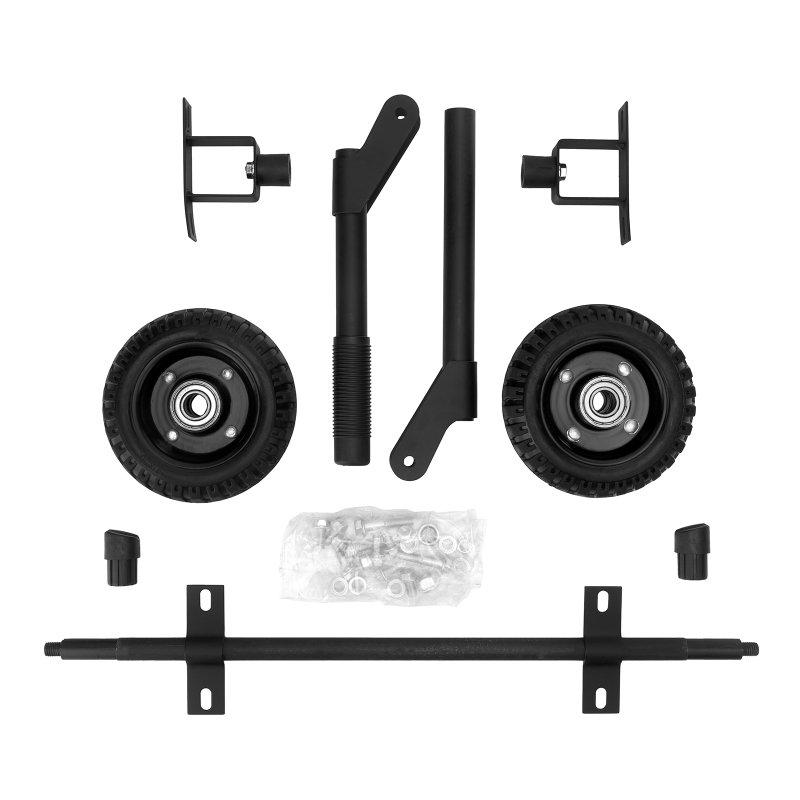 Ручка - 2 штКолесо - 2 штОпора - 2 штДемпфер - 2 штОсь - 1 штСкоба крепления оси - 2 штБолт с фланцем М8 - 2 штГайка самоконтрящаяся - 2 штМалый болт с фланцем М8 - 8 штГайка с фланцем М8 - 12 шт