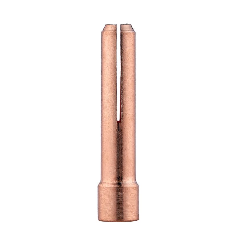 Цанга диаметром 2,0 мм выполнена из меди и вставляется в держатель цанги. Подходит для керамических сопел 9/20/25. Служит для плотной фиксации вольфрамового электрода в горелке TIG. Диаметр цанги должен совпадать с диаметром вольфрамового электрода, а также с диаметром держателя цанги.
