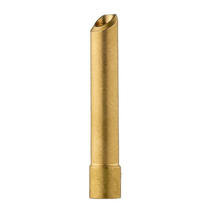 Цанга изготовлена из меди и имеет скошенную форму. Особая форма углового среза обеспечивает большую площадь контакта вольфрама с цангой, за счет чего улучшается зажигание дуги и ее стабильность. Не деформируются при сварке и многократных закручиваниях заглушки, тем самым обладает увеличенным сроком службы.