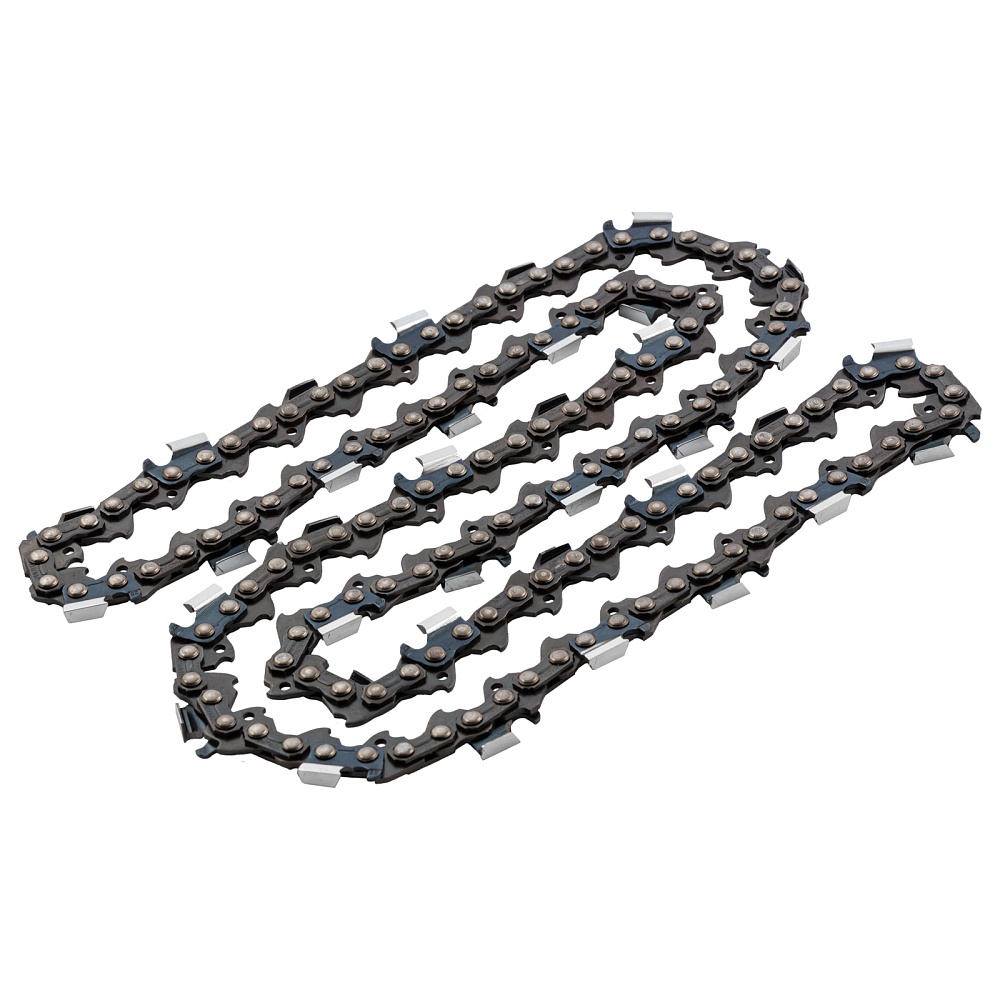 <p>Цепь Denzel 59804 рассчитана на применение с бензопилой Denzel DGS-4516. Состоит из 57 звеньев, надевается на пильную шину длиной 40 см, поэтому отлично подходит для обработки деревянных заготовок в частных мастерских, распиловки бревен, срезания сучьев и веток в саду, также пригодится на охоте и рыбалке.</p><h2>Преимущества</h2><ul><li>Высокий ресурс — цепь сделана из легированной стали, поэтому хорошо справляется с ударными нагрузками, устойчива к коррозии и применима даже для распиловки льда.</li><li>Долговечность — благодаря чипперному, т.е. серпообразному типу режущего звена цепь легко затачивается и практически не загрязняется.</li><li>Аккуратная работа — технология лазерной заточки цепи обеспечивает ровные спилы и предотвращает перегрев двигателя.</li><li>Долговечность — система автоматической подачи масла к цепи увеличивает срок ее службы.</li><li>Безопасное хранение и транспортировка — защитная упаковка предотвращает контакт с острыми звеньями.</li></ul>