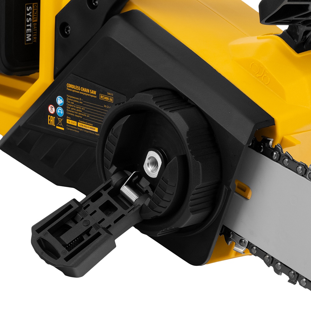 Цепная пила аккумуляторная бесщеточная RCS400-36, Li-ion, 36 В, 4 Ач, шина 400 мм Denzel