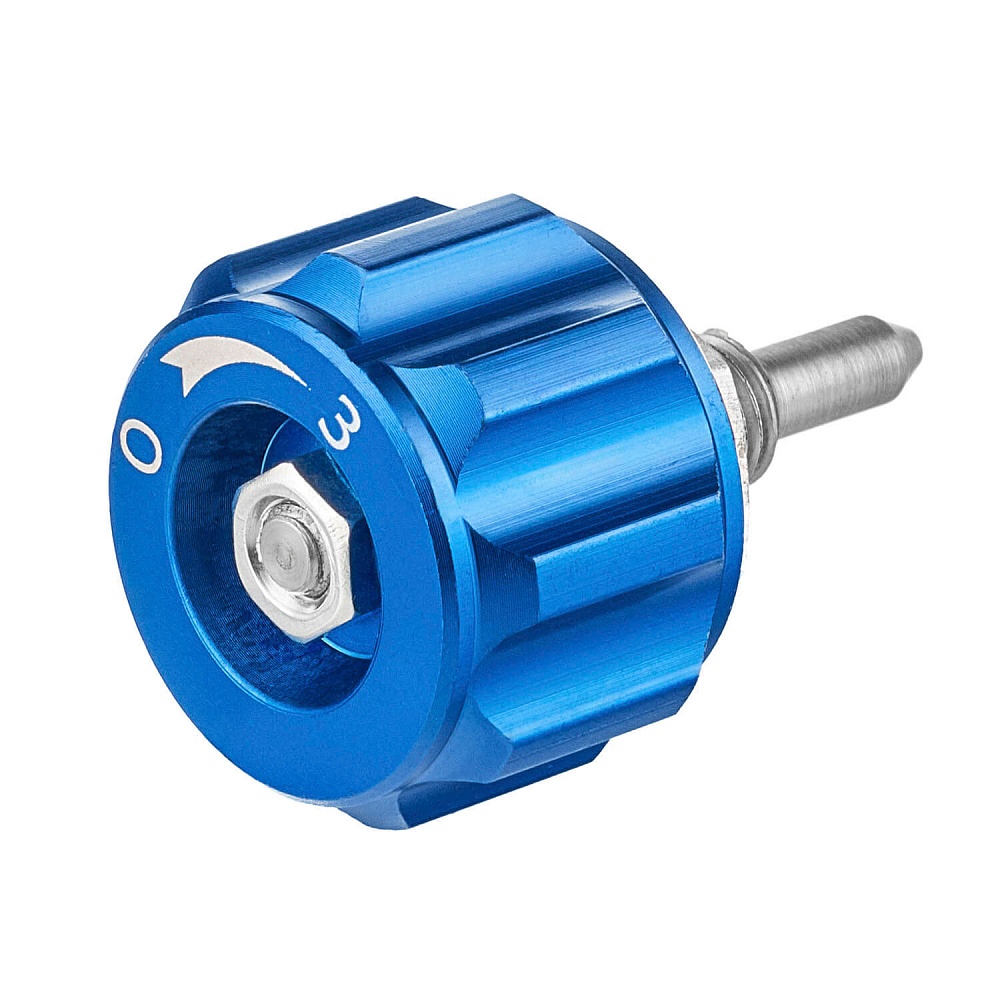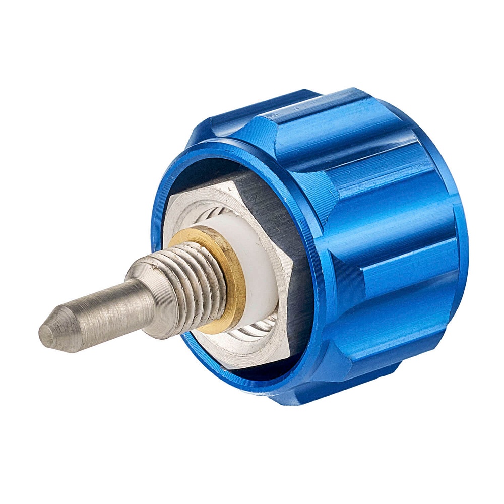 Вентиль КП изготовлен из латуни. Синий барашек изготовлен из алюминия и имеет гравировку на торцевой части с информацией о направлении закрытия (буква «З») и открытия (буква «О») вентиля.