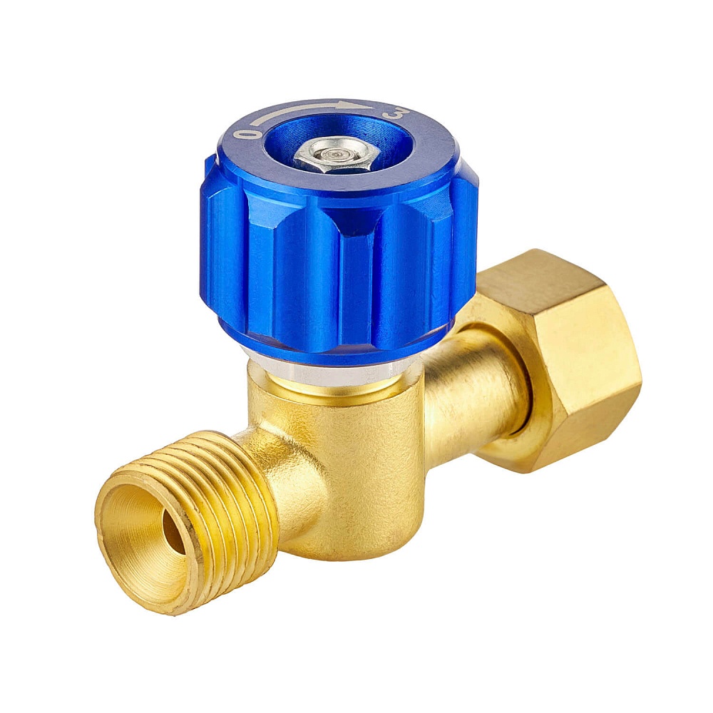 Вентиль КП изготовлен из латуни. Синий барашек изготовлен из алюминия и имеет гравировку на торцевой части с информацией о направлении закрытия (буква «З») и открытия (буква «О») вентиля. Барашек вентиля КП имеет уменьшенный диаметр и схож с барашком вентиля ГГ.
