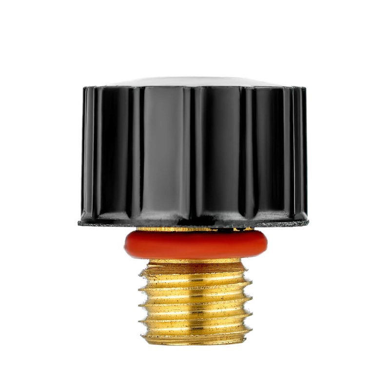 Заглушка короткая закрывает выходящий из аргонодуговой горелки TIG вольфрамовый электрод. Заглушка изготовлена из ударопрочного пластика, медная резьба и резиновое кольцо-уплотнитель позволят плотно зафиксировать заглушку в головке аргонодуговой горелки. Подходит для горелок серий 9/20/25.