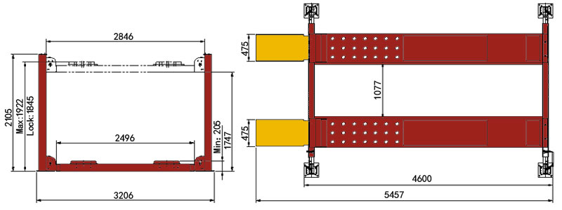 Конструкция подъемника рассчитана для работы с 3D сход-развалом (Hunter, Hofmann, Техно Вектор, АМД и другие)