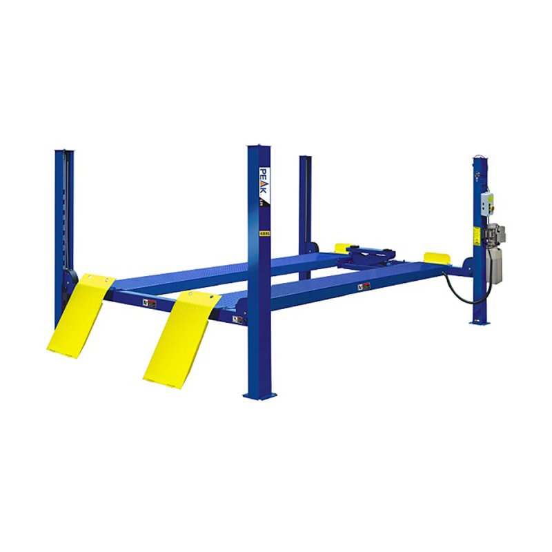 Peak 410 - четырехстоечный электрогидравлической подъемник с гладкими платформами Имеет грузоподъемностью 4,5 тонн. Оснащен пневматической системой безопасности с электронным контролем. Длина платформ составляет 4998 мм. Платформы имеют специальное противоскользящее покрытие.
