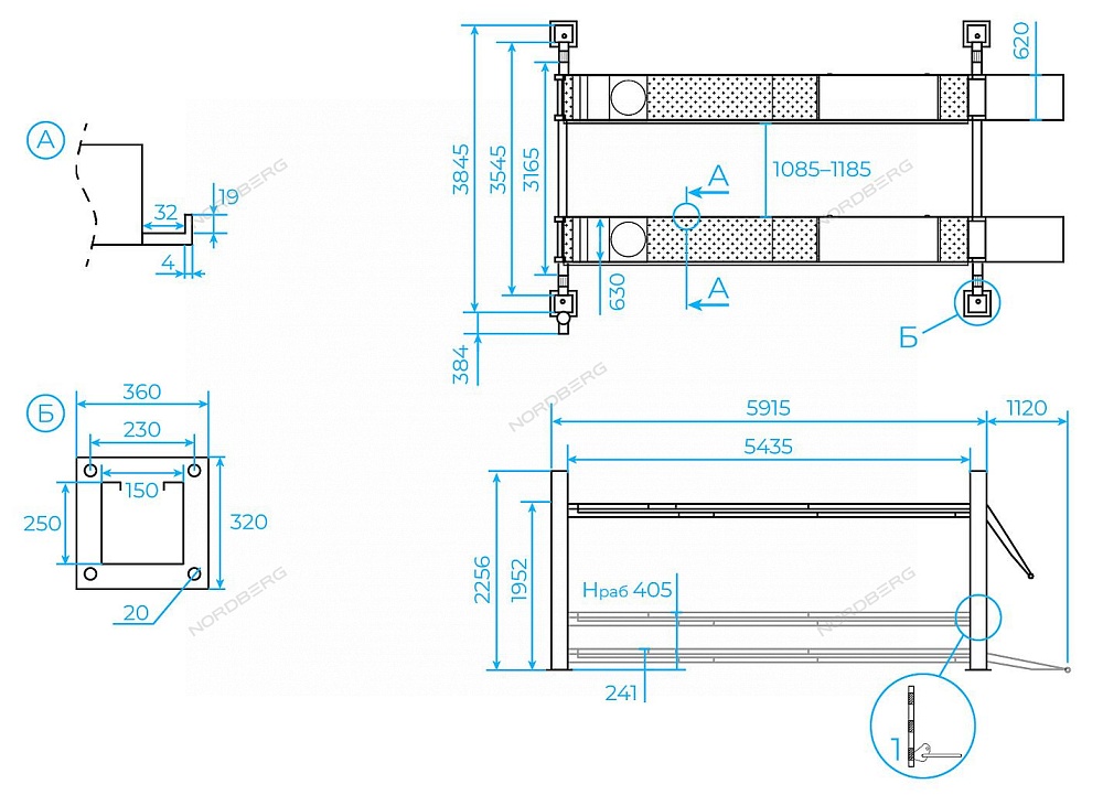 Подъемник четырехстоечный 6,5 т, для сход-развала, синий NORDBERG 4465B_N433BA