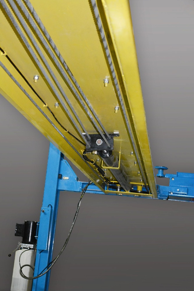 Оснащен тросовой синхронизацией, платформами для регулировки углов установки колес со встроенными задними скользящими пластинами и выемками под передние поворотные круги (поворотные круги в комплектацию подеъемника не входят).