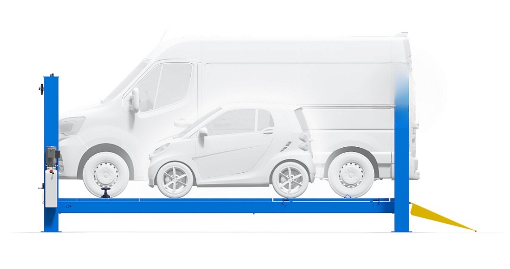 • Удлиненный четырехстоечный подъемник общей массой до 6,5 тонн
