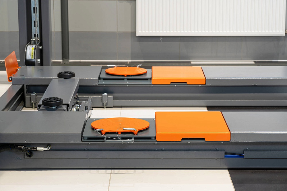 • Ниши для установки передних поворотных платформ для проведения регулировки углов установки колёс