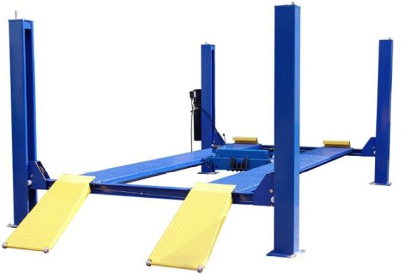 Электрогидравлический четырехстоечный подъёмник грузоподъемностью 5 т для обслуживания легкового транспорта Оснащение подъемника дает возможность производить регулировку развал/схождения, ремонт тормозной и рулевой систем, и другие работы