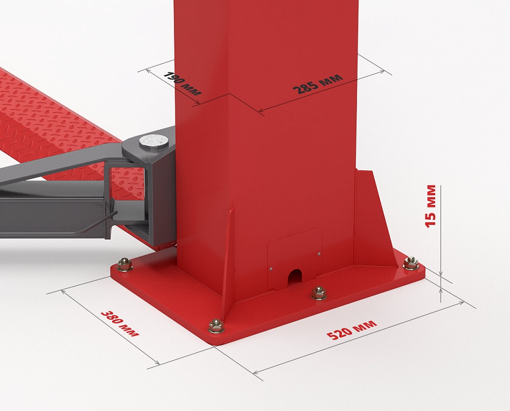 Усиленные стойки и габариты опорной платформы обеспечивают абсолютную жесткость подъемника Launch и уменьшают нагрузку на фундамент.