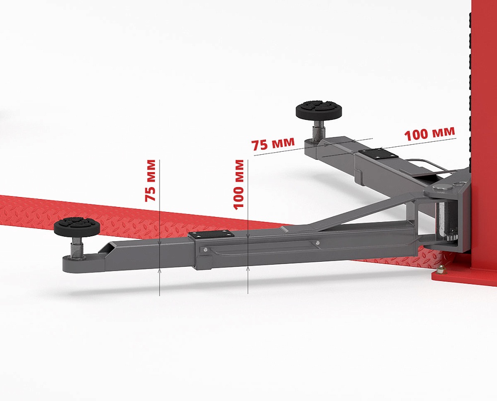 Винтовые опоры для плавной регулировки подхвата автомобиля (от 110 мм от пола) с возможностью доустановки опции — проставок-удлинителей для рамных автомобилей.