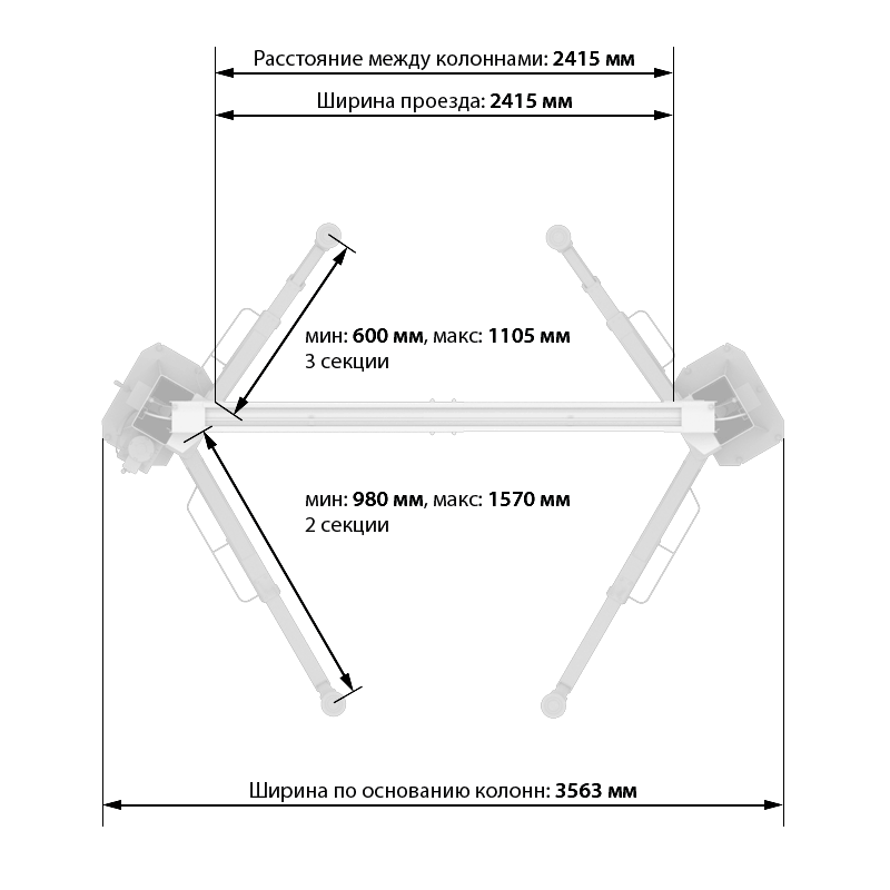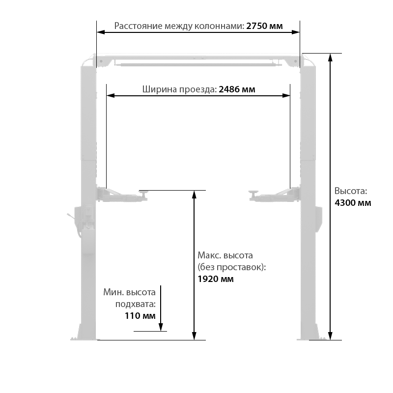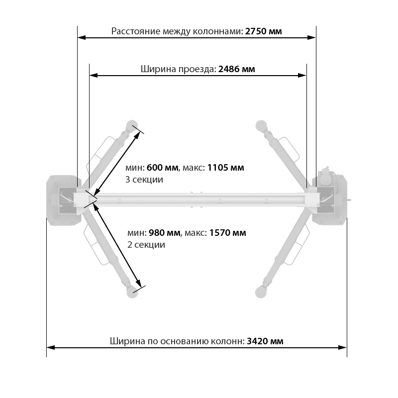 • Возможность симметричной или асимметричной установки стоек подъемника (в зависимости от задач пользователя)