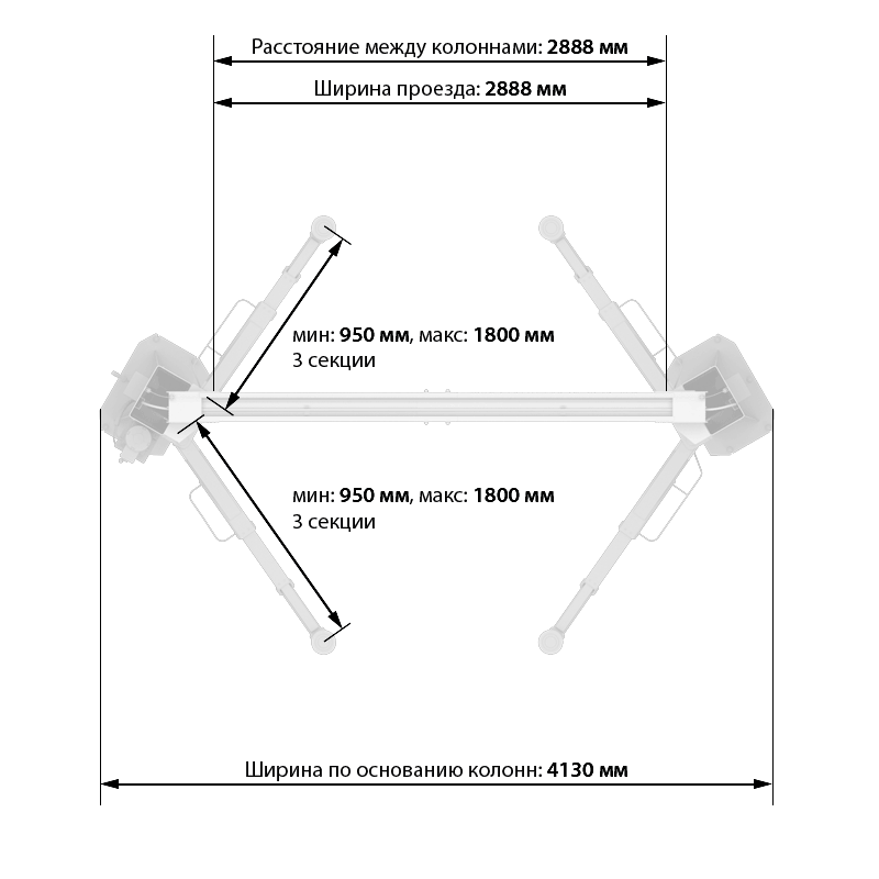 - Уникальная модификация 2-стоечного подъемника с увеличенной рабочей зоной для работы с крупным коммерческим транспортом и спец. машинами. Также поддерживает работу с обычным легковым транспортом;