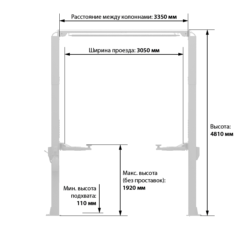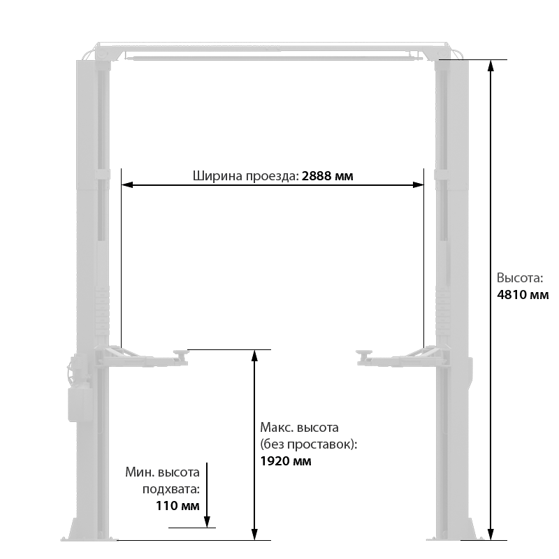 Увеличенные габариты стойки и опорной платформы, а также наличие верхней планки синхронизации — обеспечивают абсолютную жесткость подъемника Лаунч и уменьшают нагрузку на фундамент.