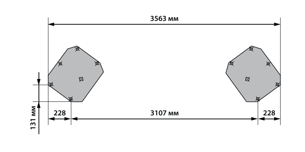 2. Ассиметричный комплект подхватывающих лап: 2 двухсекционные лапы (длина 855—1365 мм) + 2 трехсекционные лапы (длина 600—1000 мм)