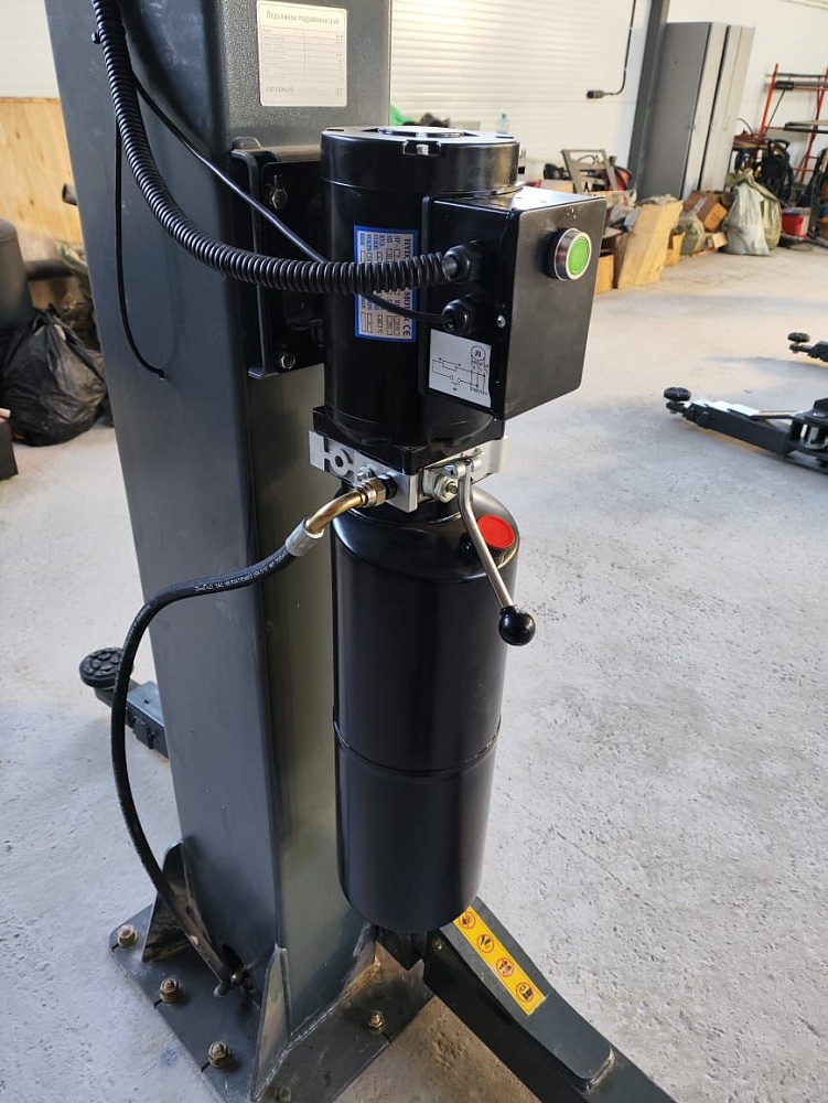 Электрогидравлический 2-х стоечный автомобильный подъёмник с верхней синхронизацией и разблокировкой на двух каретках грузоподъемностью 4,5 тонны.