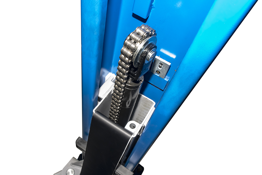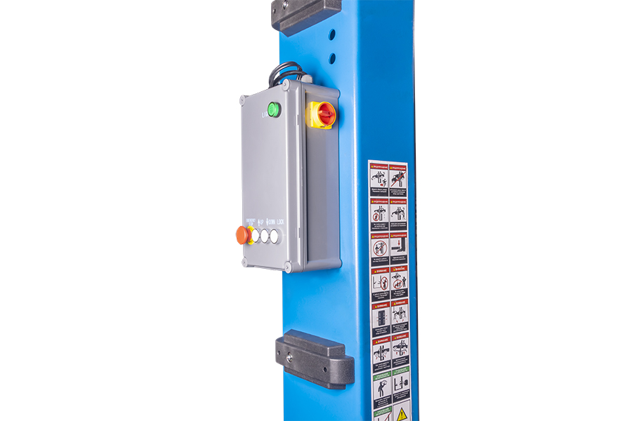 Двухстоечный электрогидравлический подъемник с верхней синхронизацией, грузоподъемность 5.5 т, высота колонны 4753/5058мм, механическое управление стопорами на одной колонне.