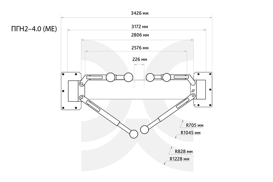 | Длина передних лап | 705–1045 мм | Ширина между стоек | 2806 мм |