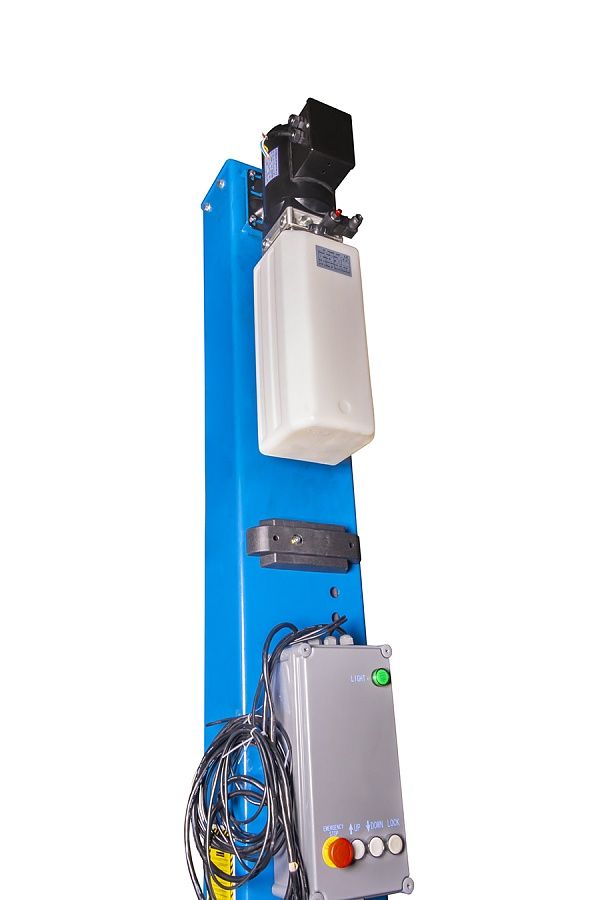 Электрогидравлический 2-х стоечный автомобильный подъёмник с верхней синхронизацией и электро-магнитной разблокировкой с пульта, грузоподъемностью 4,5 тонны.