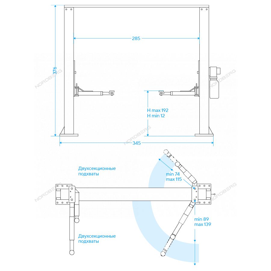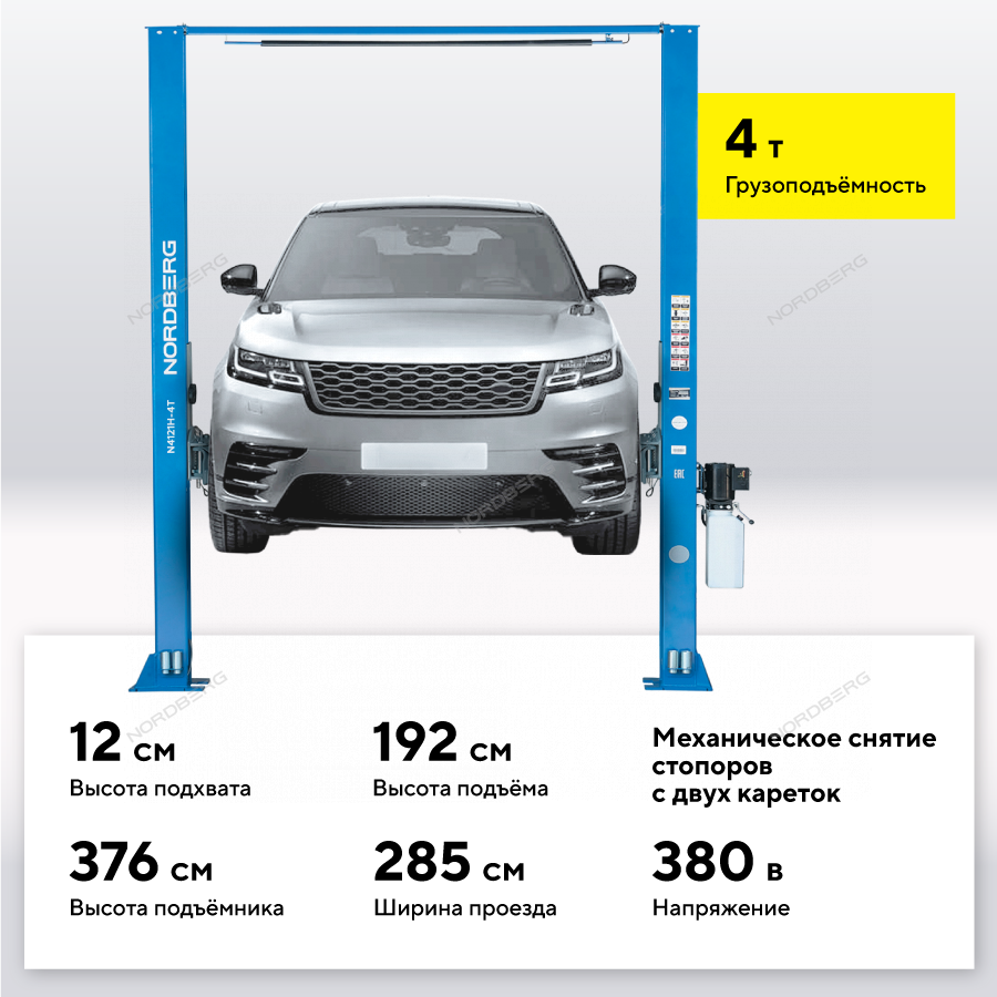 Подъемник 220V с верхней синхронизацией NORDBERG N4121H-4T купить в СПб цена ✅ - Все для СТО