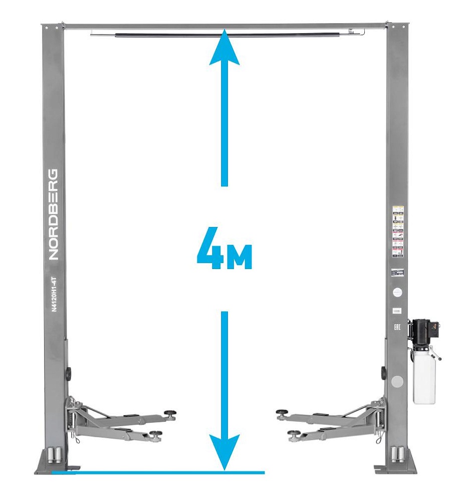 Подъемник двухстоечный 4 т, верхняя синхронизация, с электростопорами, H=4 м, 380 В, серый NORDBERG N4120H1E-4G_3+2_380