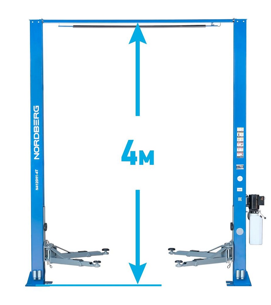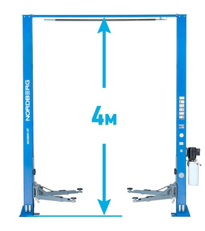 Подъемник двухстоечный 4 т, верхняя синхронизация, с электростопорами, H=4 м, 380 В, синий NORDBERG N4120H1E-4B_3+2_380
