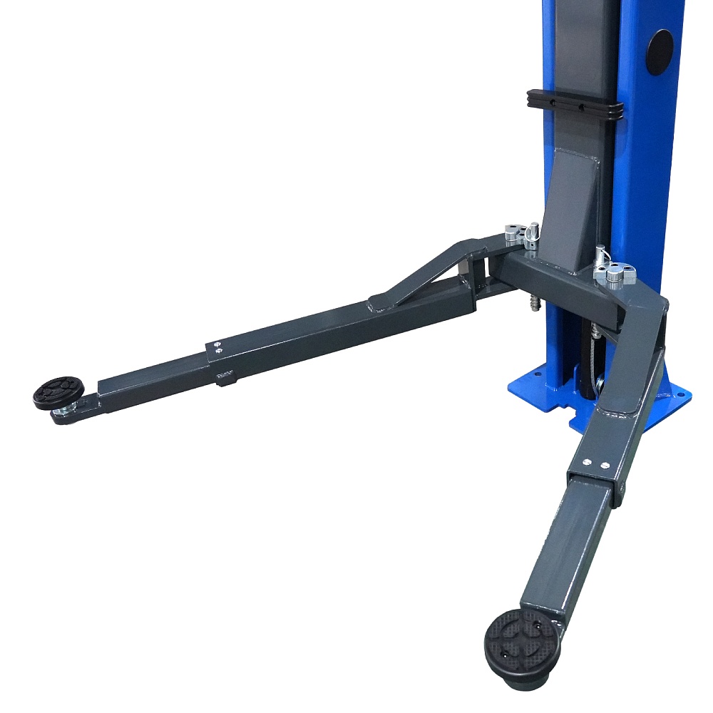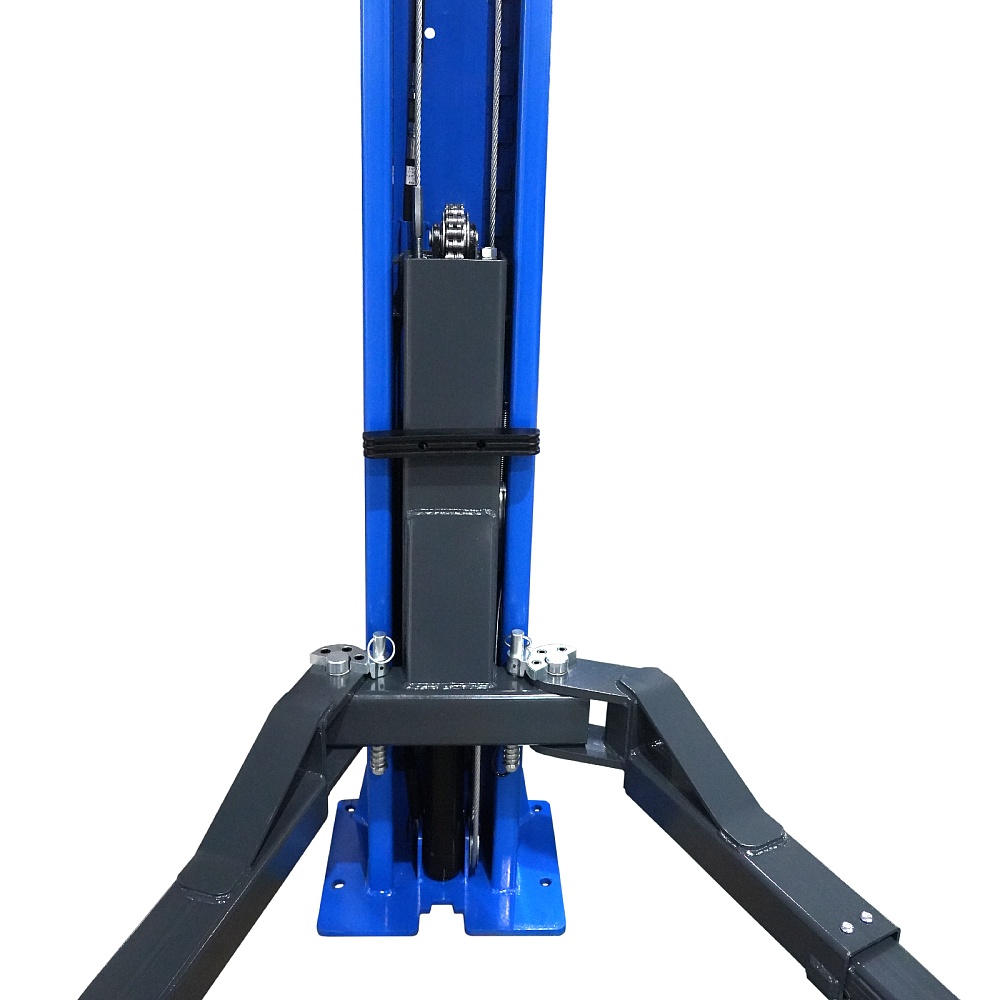 Электрогидравлический 2-х стоечный автомобильный подъёмник с верхней синхронизацией и разблокировкой рычагом на одной колонне, грузоподъемностью 4,5 тонны.