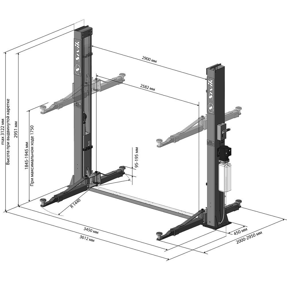 Подъемник двухстоечный Sivik ПГА-4100-НС 220В синий купить в СПб цена ✅ - Все для СТО