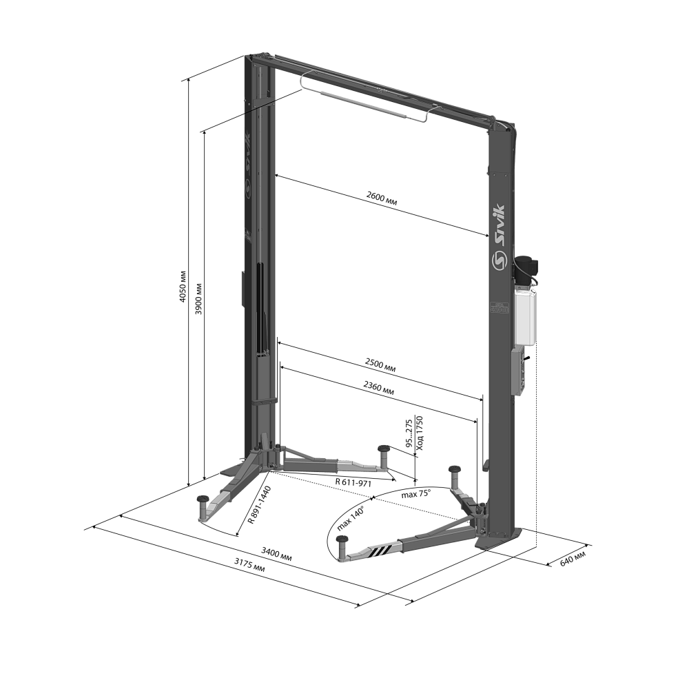 Подъемник двухстоечный Sivik ПГА-4200 серый купить в СПб цена ✅ - Все для СТО