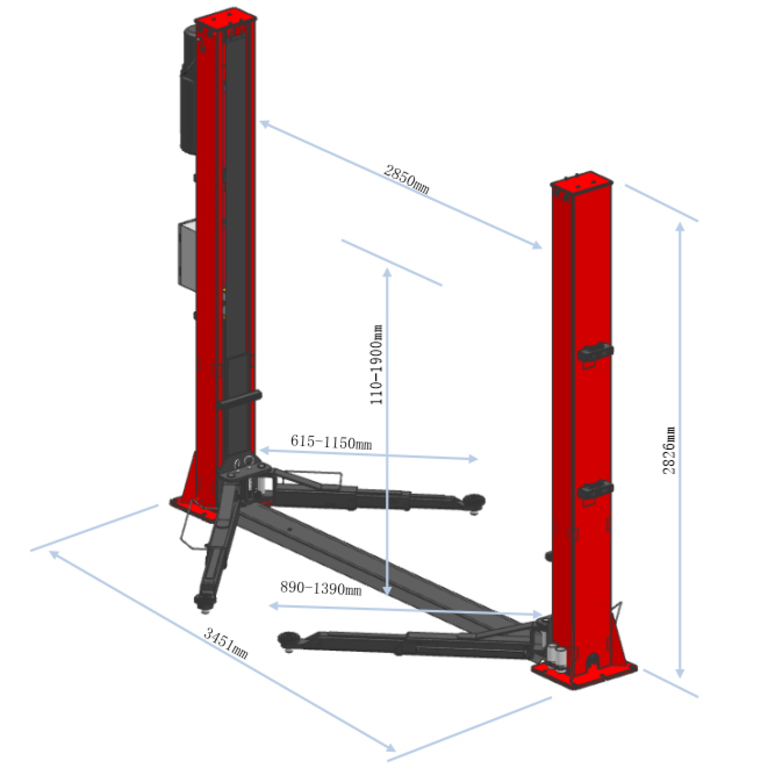 Подъемник электрогидравлический 4т 2-х стоечный 220В с ниж.синхронизацией (электрический спуск) GTE купить в СПб цена ✅ - Все для СТО